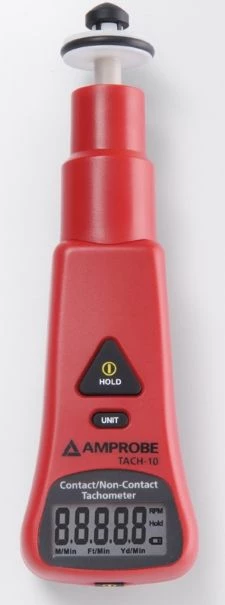 - Le Beha-Amprobe Tach10 est un tachymètre universel qui mesure la vitesse de rotation ou la vitesse de surface, avec ou sans contact.