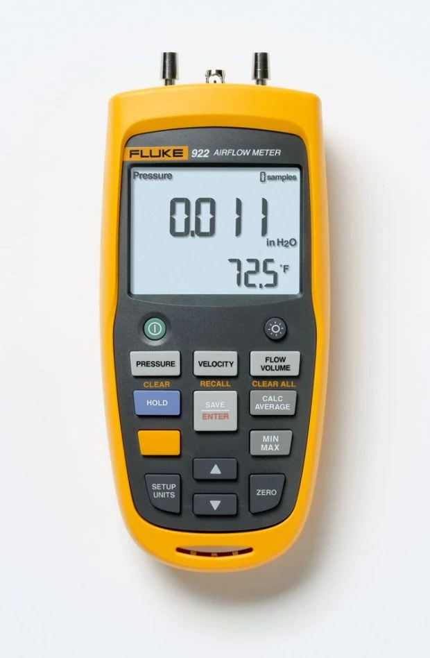 - En combinant les mesures de pression d »air différentielle, de vitesse d »air et de débit d »air en un seul appareil, le Fluke 922 permet aux techniciens de surveiller facilement les composants des équipements de chauffage, de ventilation et de climatisation (CVC), et contribue à maintenir un environnement de travail agréable en vérifiant l »équilibre optimal du débit d »air