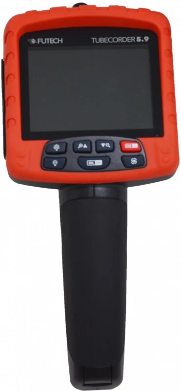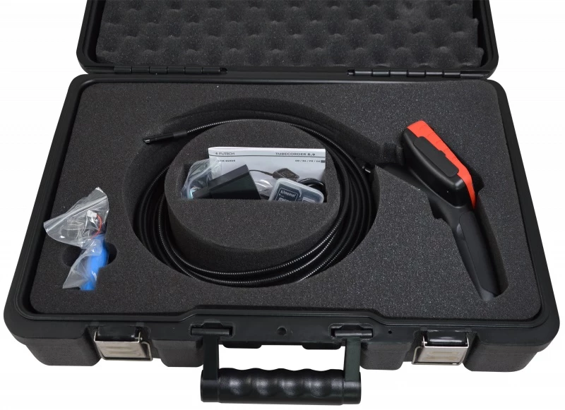 - La caméra de 9 mm du col de cygne de 5 m de long dispose de 4 lumières LED sur la tête et d’une plage de mise au point (profondeur de champ) de 5 à 15 cm.