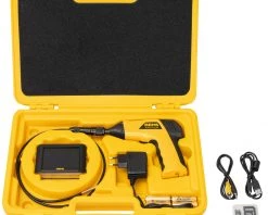 - Jeu de câbles de caméra Color 5.2-1, caméra couleur Ø 5,2 mm, 640 × 480 pixels, avec LED à lumière blanche dimmable, fonction de mise au point fixe, câble coulissant moulable de 1 m. Idéal pour inspecter les petits coudes de tuyaux et les endroits exigus.