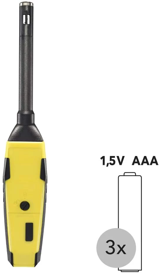- Mesure d’une large gamme de données climatiques avec un seul appareil : humidité relative, température de l’air, point de rosée et température du bulbe humide.